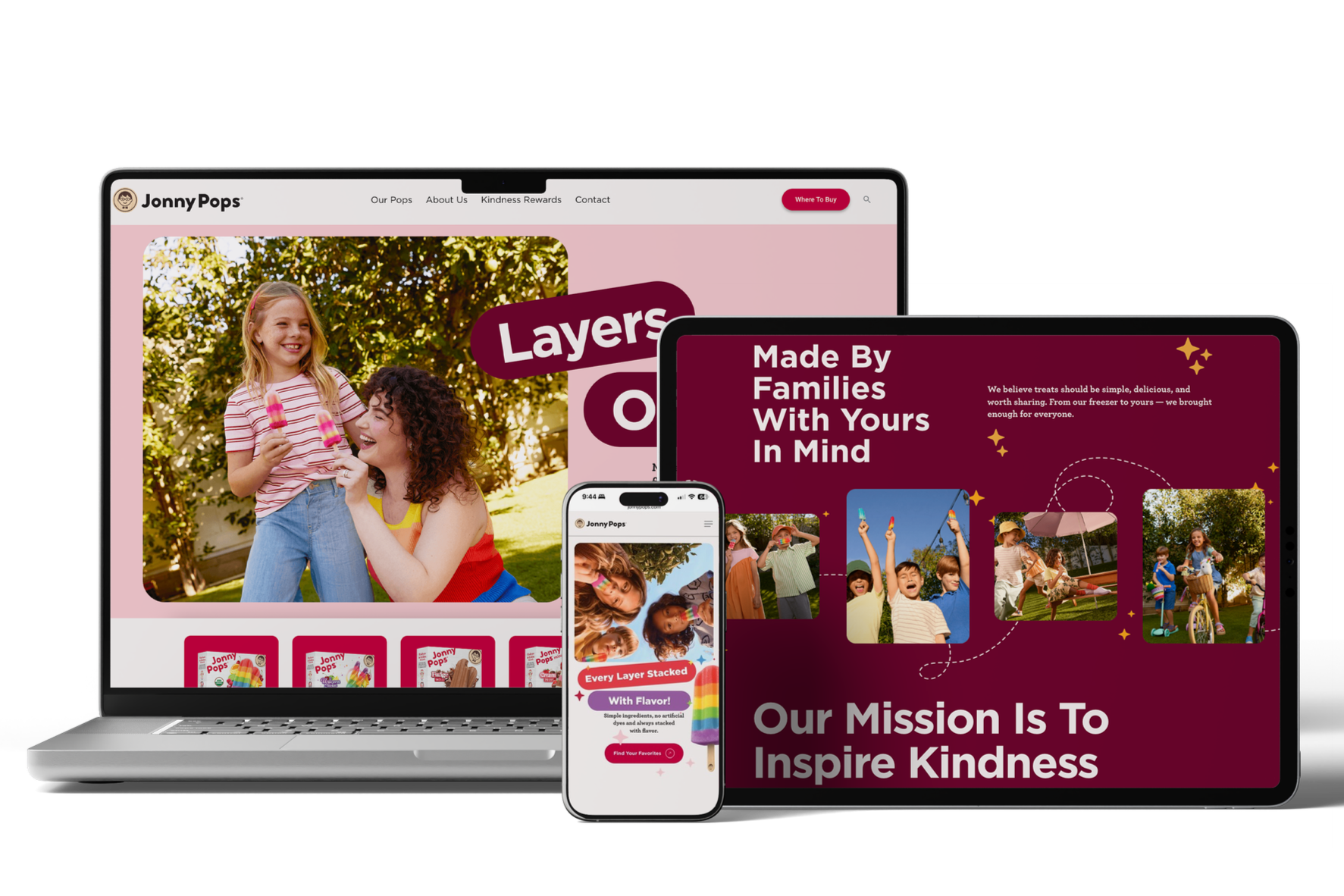 The new site finally looks and feels like JonnyPops. Bold, joyful, and built for the brand it actually is. The Kindness is Golden page redesign was the quiet standout, communicating the rewards program so clearly it produced a dramatic drop in customer service contacts.